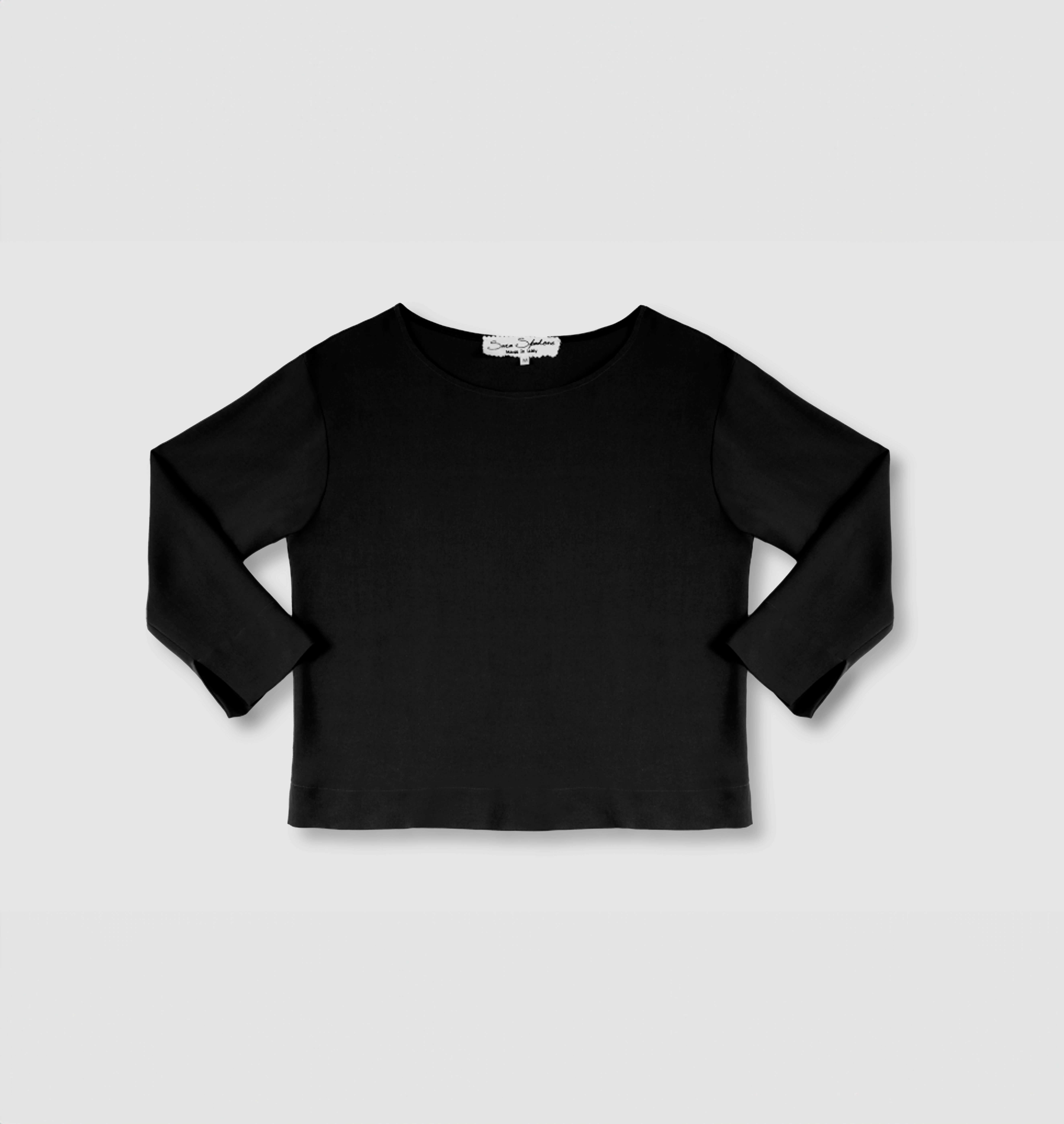 Blusa in cady di viscosa taglia unica, linea semplice e fluida con scollo rotondo e spalla scesa manica lunga