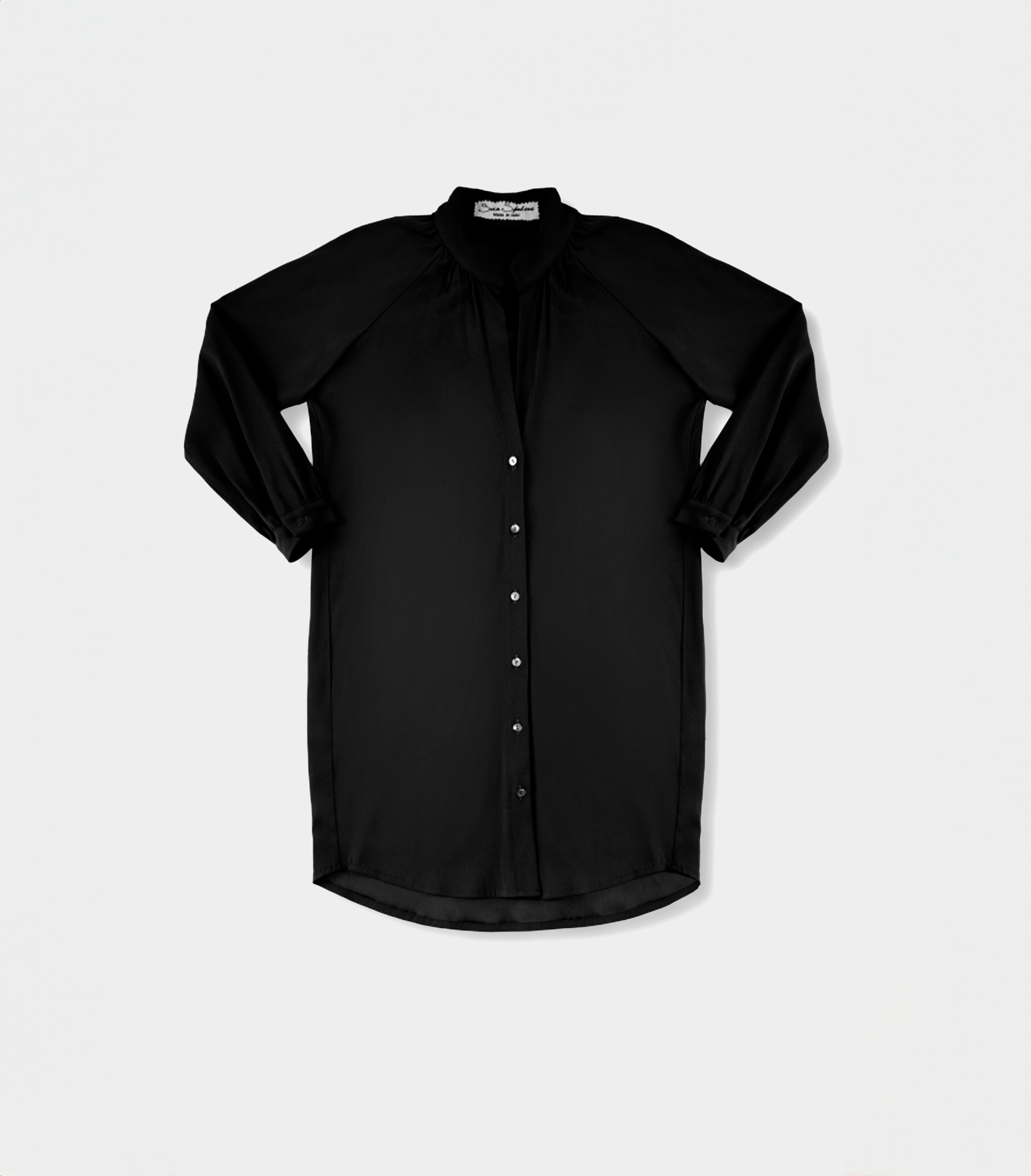 Abito realizzato in cady di viscosa, linea morbida e manica raglan donano comoditร  e comfort, bottoni rigorosamente in madreperla sul davanti e ai polsini.